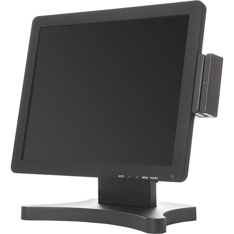 Стильный и функциональный монитор со встроенным считывателем магнитных карт легко интегрируется в автоматизированную систему; интерфейсы – VGA и USB (+USB для MSR). Резистивный сенсорный экран удобен для работы в перчатках или с использованием твердых предметов (карта, стилус и т.п.)